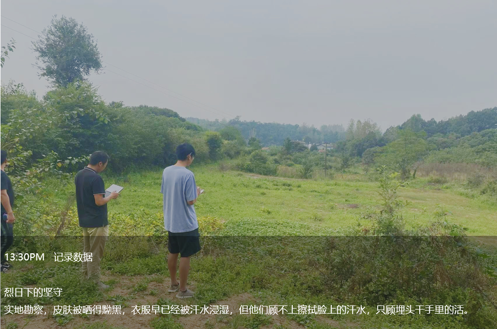下午2點自然資源部虎哥無懼烈日“烤”驗,在項目現(xiàn)場開展勘察工作,他以山巒為稿紙,以圖紙為筆,以汗水為墨,書寫最真實的工作日常。