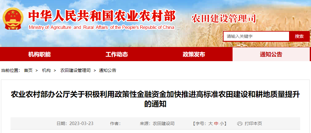 為貫徹落實黨中央、國務院決策部署,進一步用好投融資政策工具,支持政策性金融機構立足職能定位,在業務范圍內提供信貸支持,加快高標準農田建設,加強農田基礎設施建設和運營管護,提升耕地質量,經商中國農業發展銀行等單位,現就有關事項通知如下: