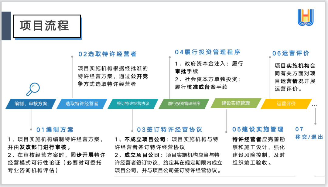 4、地方各級人民政府應授權有關行業主管部門、事業單位作為項目實施機構,完成相應的方案編制、特許經營者選擇等流程。