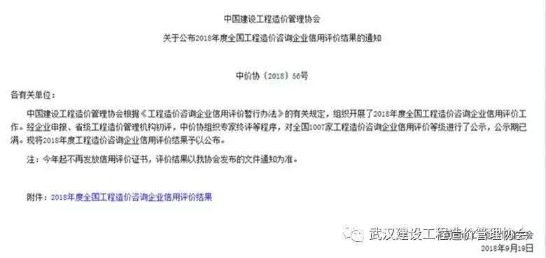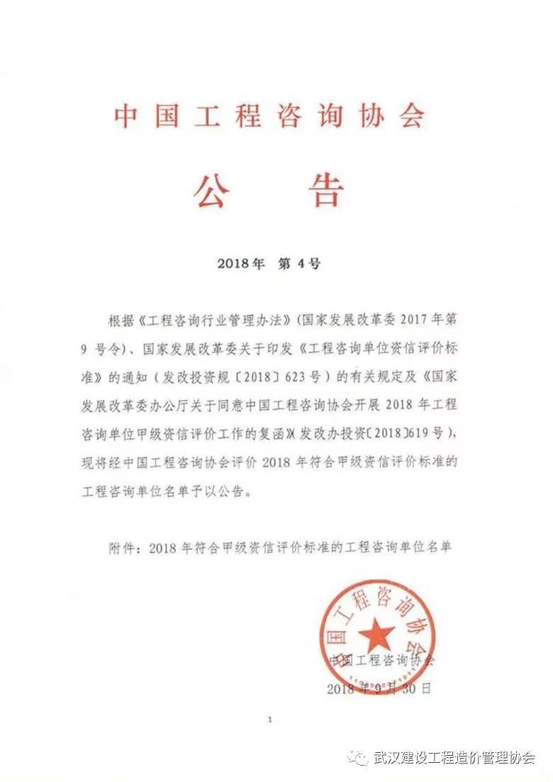 2018年9月19日,中國(guó)建設(shè)工程造價(jià)管理協(xié)會(huì)發(fā)布了“2018年度全國(guó)工程造價(jià)咨詢(xún)企業(yè)信用評(píng)價(jià)結(jié)果”,此次湖北省僅有22家工程造價(jià)咨詢(xún)單位獲得AAA信用評(píng)級(jí),我司從全國(guó)眾多參評(píng)單位中脫穎而出,獲此榮譽(yù)。